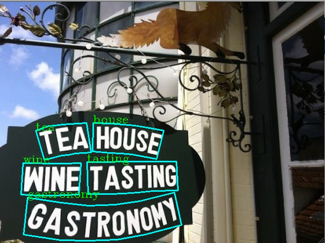 可视化文本检测结果默认保存到./inference_results文件夹里面,结果文件的名称前缀为'e2e_res'。结果示例如下: